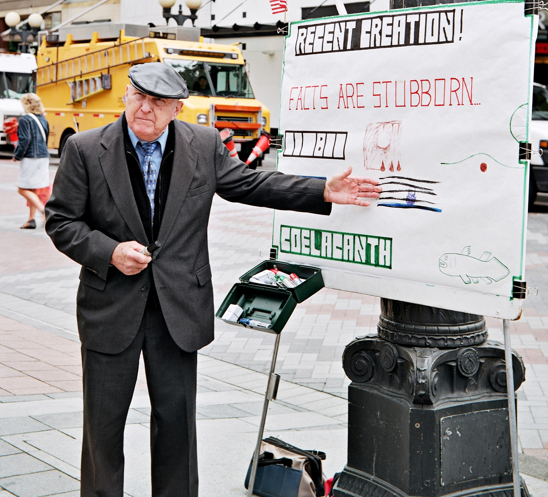 I struggle with these questions every day that I am on the street with my camera, and constantly try to balance my art with my sense of my subjects’ dignity. Yet even in this process, often the most rewarding part of the experience is the connection with the people in my pictures. I met this gentleman sitting in a doorway on Seattle’s Broadway, itself a rich palette of street cafes, college students, and many who spend their days on the streets. Many of the individuals one meets on benches and doorways are obviously in pain, and if I photograph them, it is from a distance and in a manner that preserves their anonymity. But many, if one stops to visit, are delightful and original. This gentleman gave me a quick smile as I stopped to talk, happily agreed to have his picture taken, and even offered me a choice of messages on his sign! I was late for a meeting, and unfortunately, could not stop to visit with him.